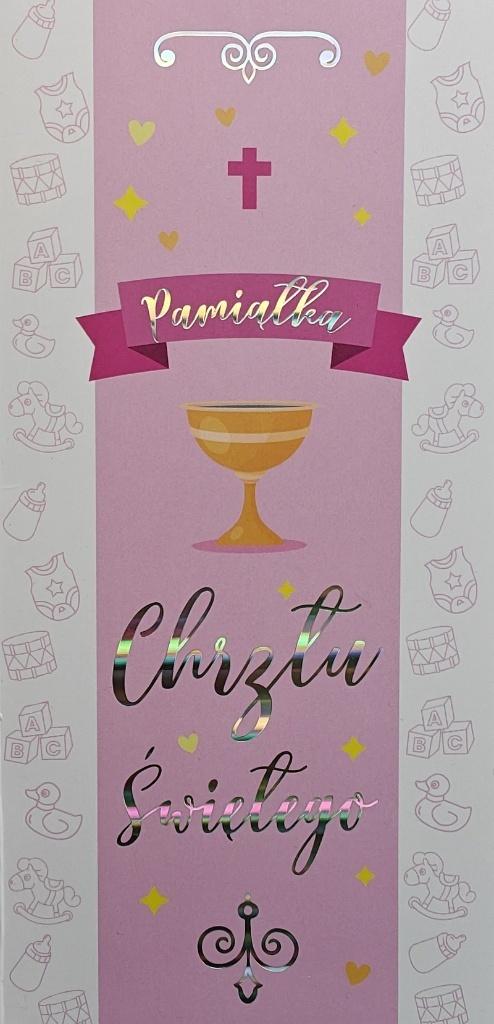 Karnet SE. Klasyczny karnet na chrzest. Uszlachetniony złoceniem holograficznym. Karnet zawiera życzenia.