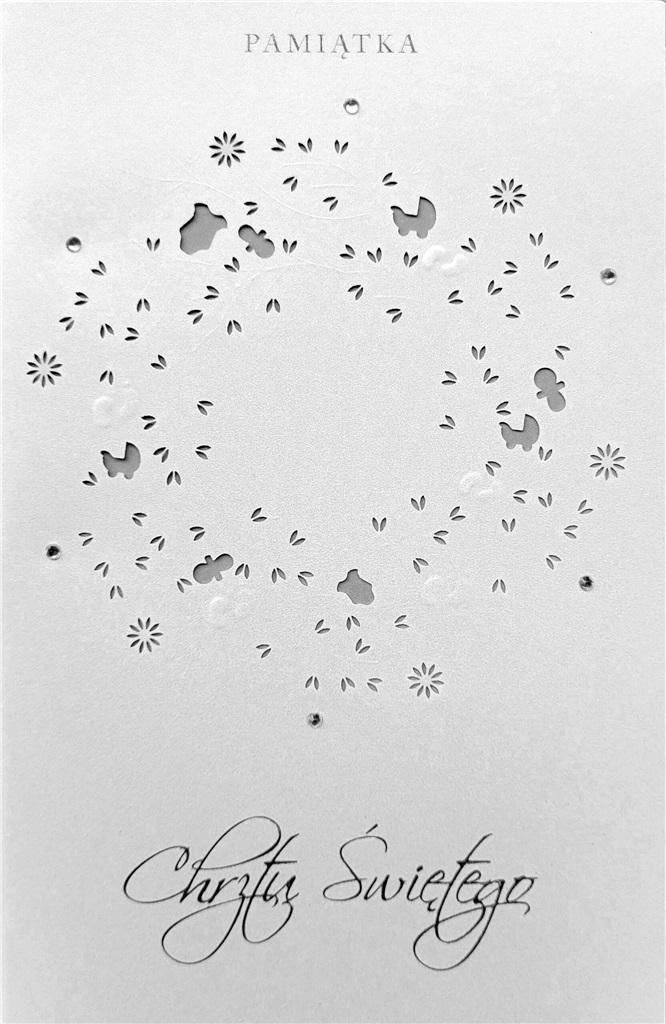 Karnet okolicznościowy z kopertą i życzeniami w środku.
