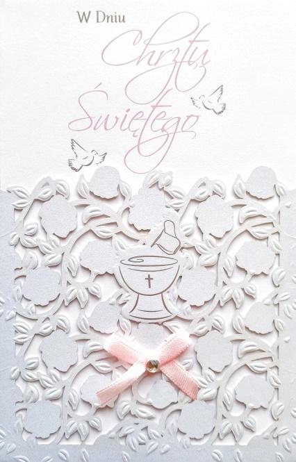 Karnet okolicznościowy z kopertą i życzeniami w środku.
