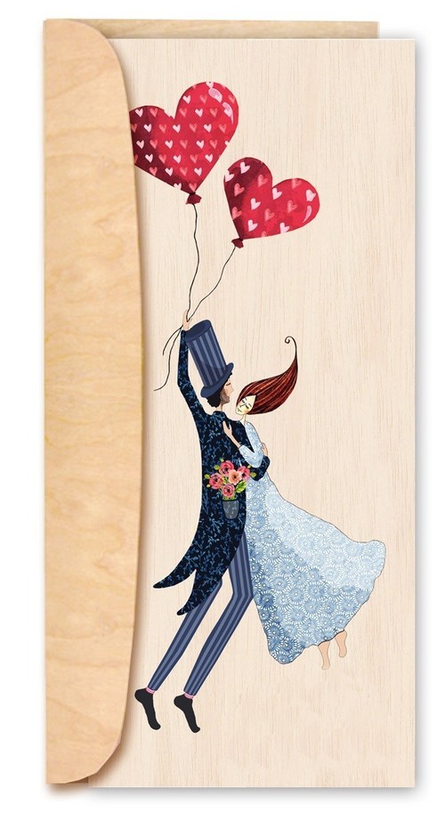 Opakowanie Karnet DL z drewnianą kopertą Ślub balony