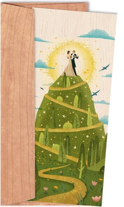 Opakowanie Karnet DL z drewnianą kopertą Ślub Wzgórze miłości