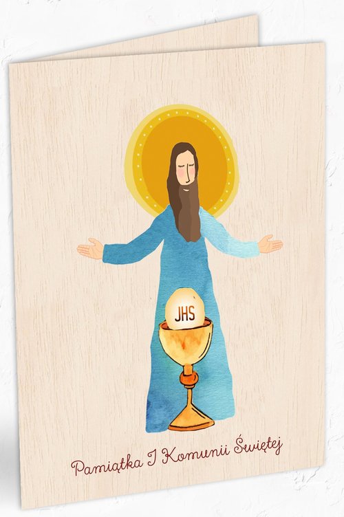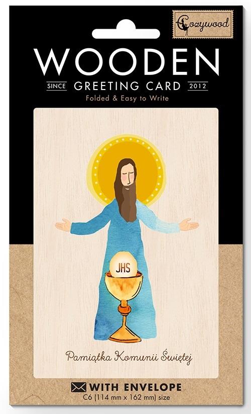 Opakowanie Karnet drewniany C6 Komunia Jezus + koperta