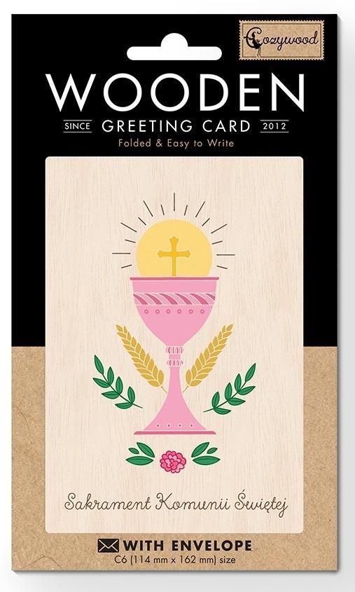 Opakowanie Karnet drewniany C6 Komunia kielich róż + koperta