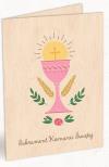 Karnet drewniany C6 Komunia kielich róż + koperta