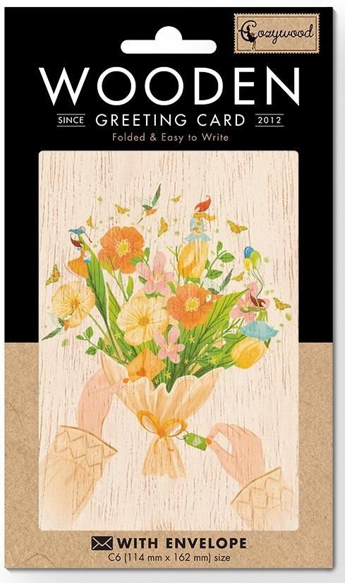 Karnet drewniany C6 + koperta Bukiet kwiatów