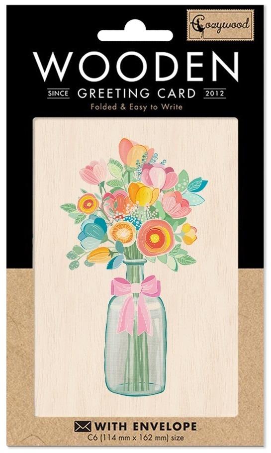 Karnet drewniany C6 + koperta Bukiet kwiatów