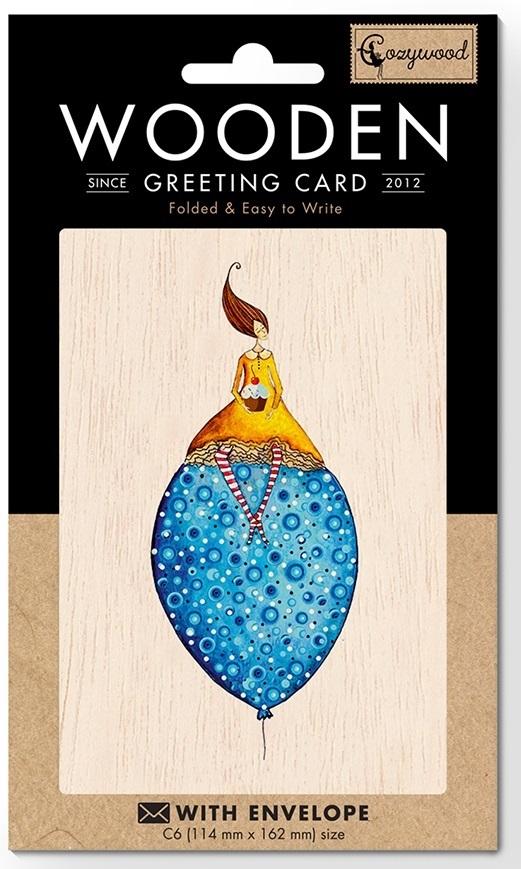 Karnet drewniany C6 + koperta Kobieta na balonie