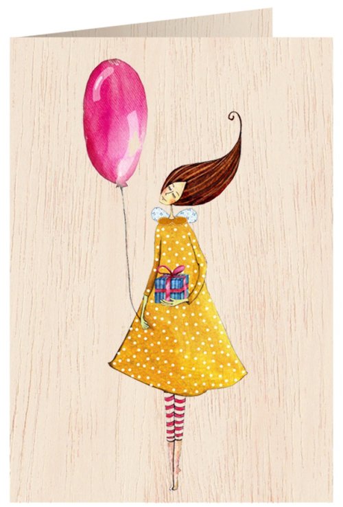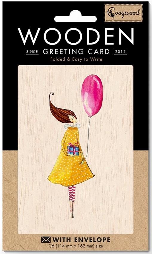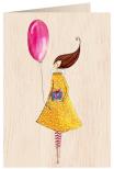 Karnet drewniany C6 + koperta Kobieta z balonem