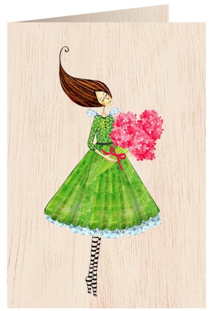 Karnet drewniany C6 + koperta Kobieta z bukietem