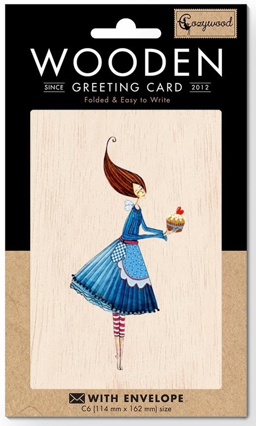 Opakowanie Karnet drewniany C6 + koperta Kobieta z ciastem