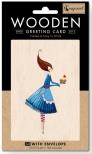Karnet drewniany C6 + koperta Kobieta z ciastem