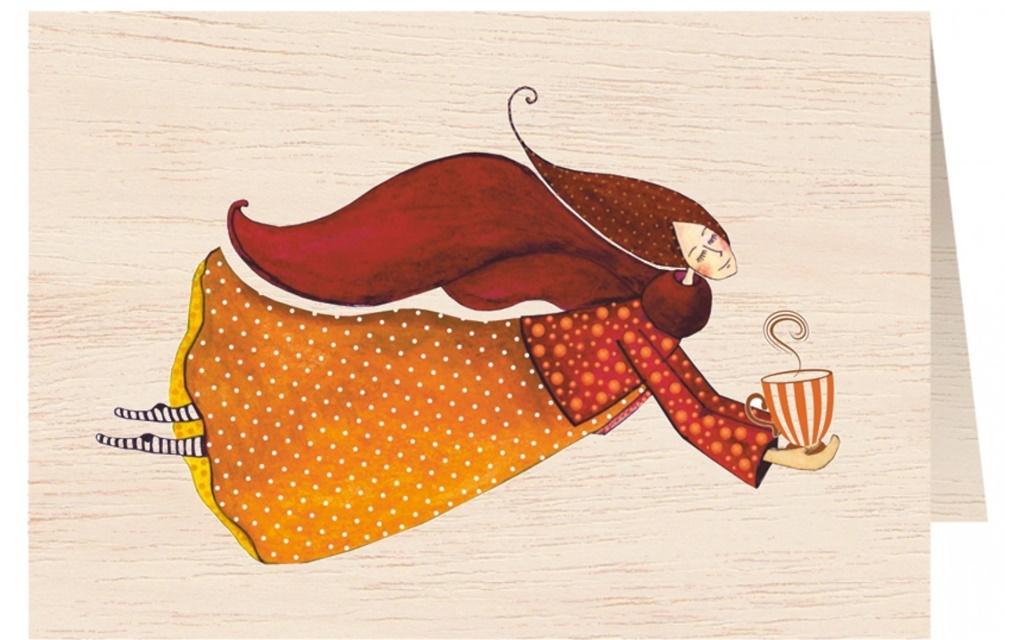Karnet drewniany C6 + koperta Kobieta z kawą