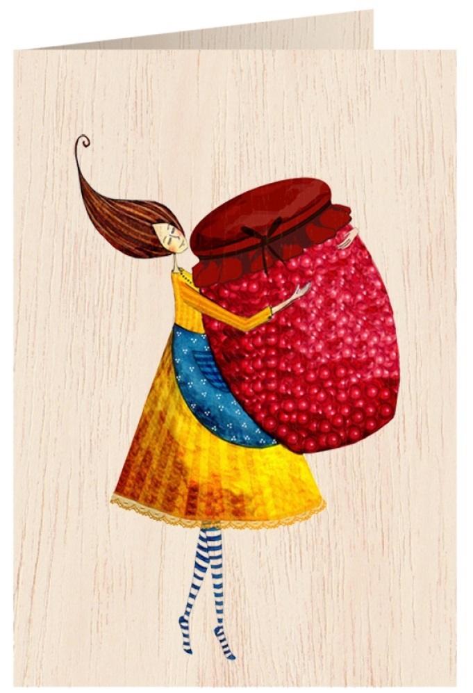 Karnet drewniany C6 + koperta Kobieta ze słoikiem
