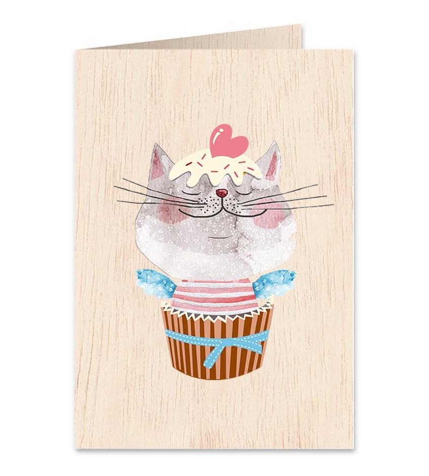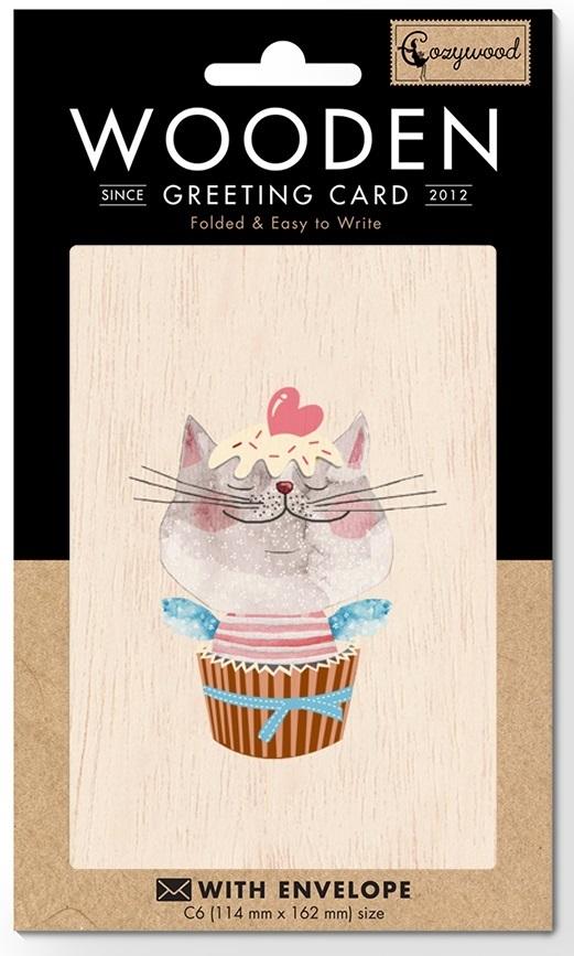 Opakowanie Karnet drewniany C6 + koperta Kot z sercem