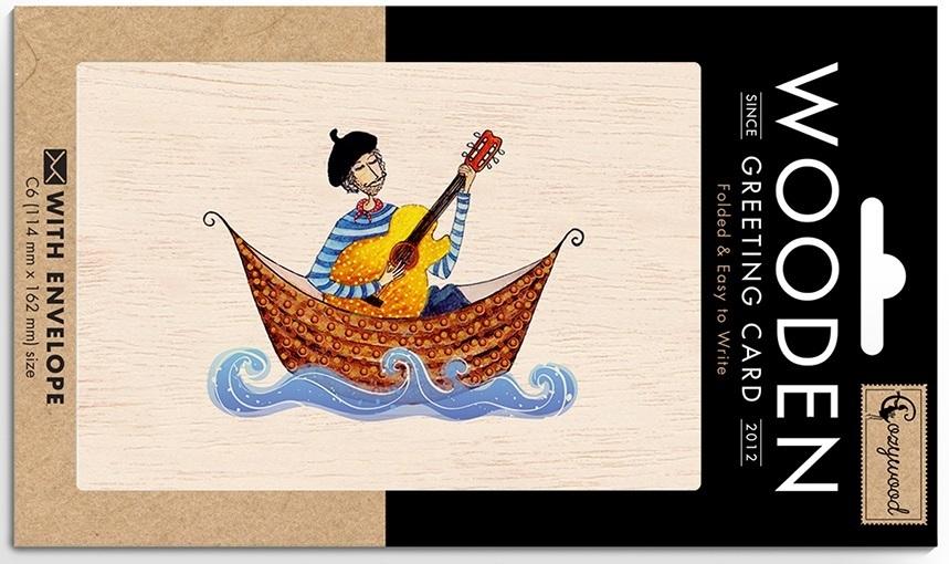 Karnet drewniany C6 + koperta Mężczyzna w łódce