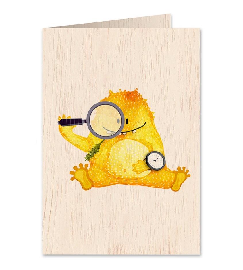 Opakowanie Karnet drewniany C6 + koperta Misiek z lupą