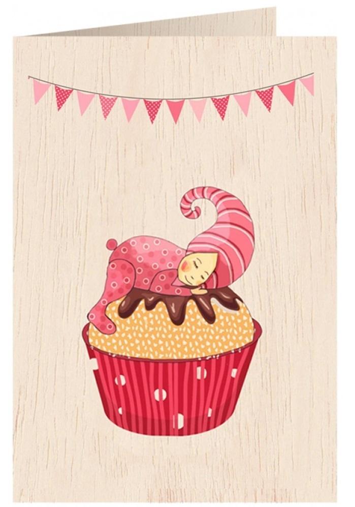 Karnet drewniany C6+ koperta Narodziny dziewczynka
