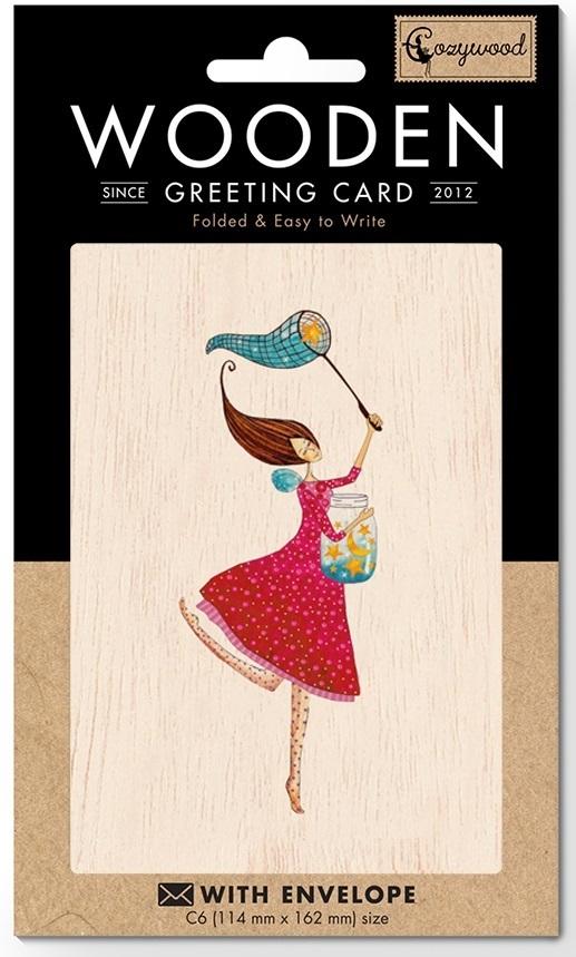 Opakowanie Karnet drewniany C6 + koperta Słoik gwiazd