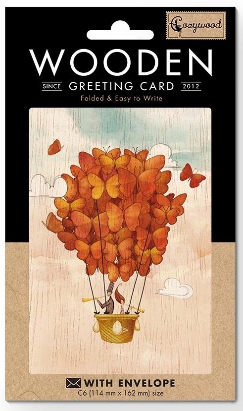 Karnet drewniany C6 + koperta Ślub Balon z motyli