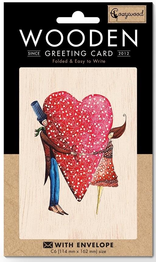 Opakowanie Karnet drewniany C6 + koperta Ślub duże serce