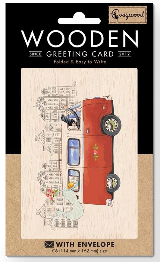 Karnet drewniany C6 + koperta Ślub kamper