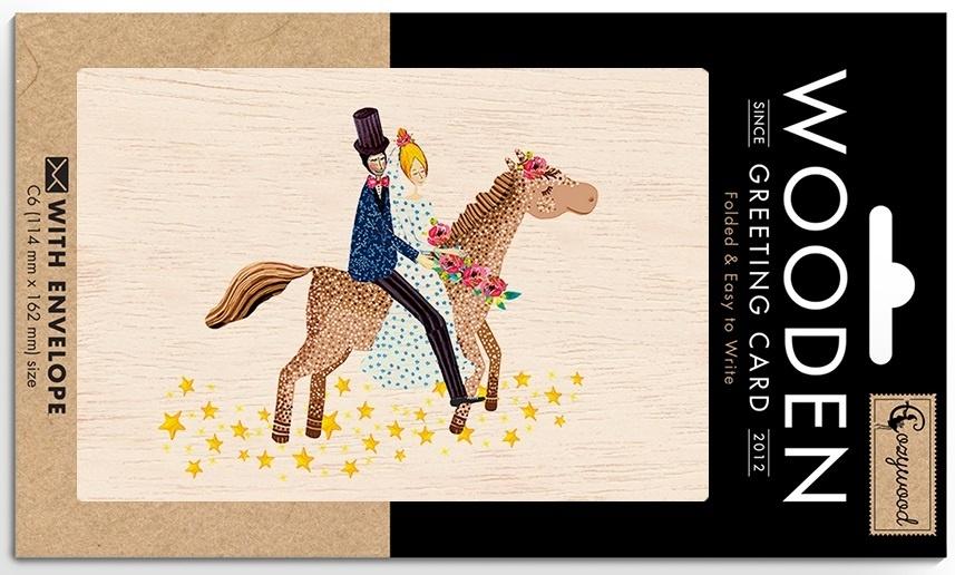 Opakowanie Karnet drewniany C6 + koperta Ślub koń