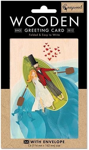 Karnet drewniany C6 + koperta Ślub Para w łódce