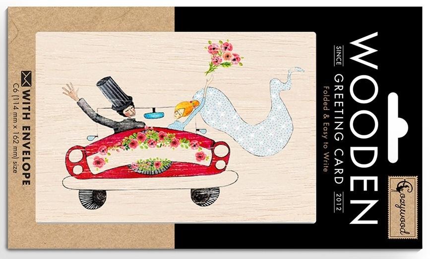 Opakowanie Karnet drewniany C6 + koperta Ślub samochód