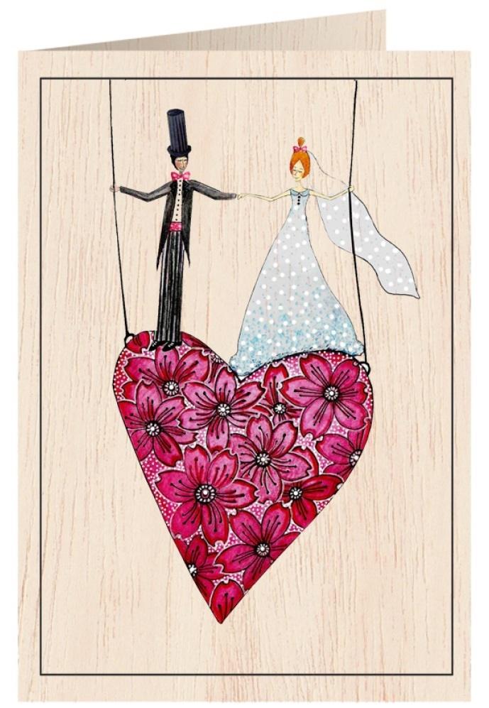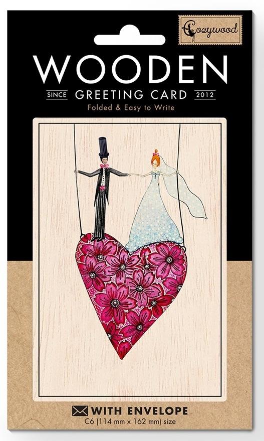 Opakowanie Karnet drewniany C6 + koperta Ślub serce