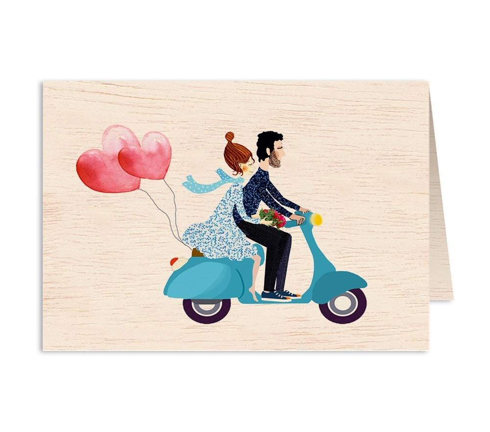 Karnet drewniany C6 + koperta Ślub skuter