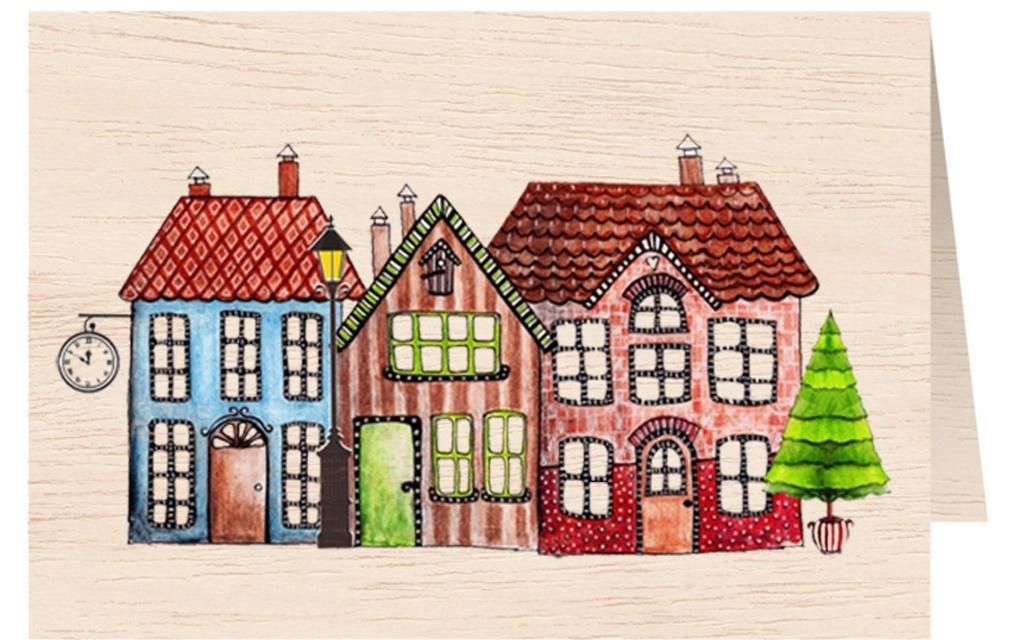 Opakowanie Karnet drewniany C6 + koperta Święta Domki