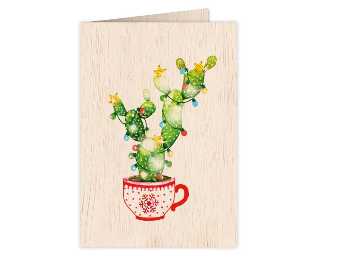 Opakowanie Karnet drewniany C6 + koperta Święta Kaktus