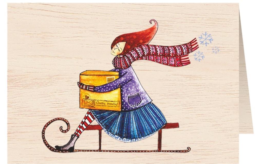 Karnet drewniany C6 + koperta Święta Kobieta na sankach