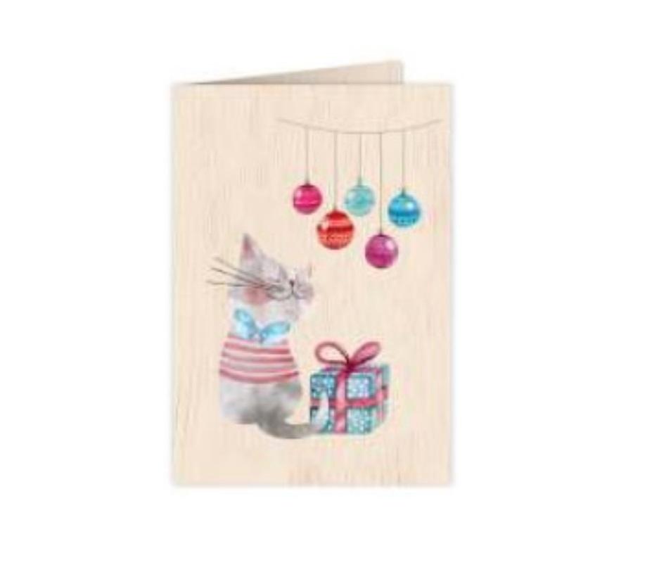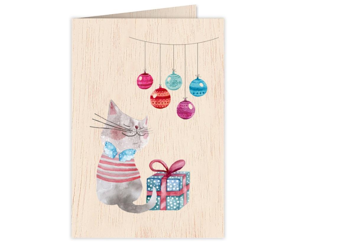 Opakowanie Karnet drewniany C6 + koperta Święta Kot