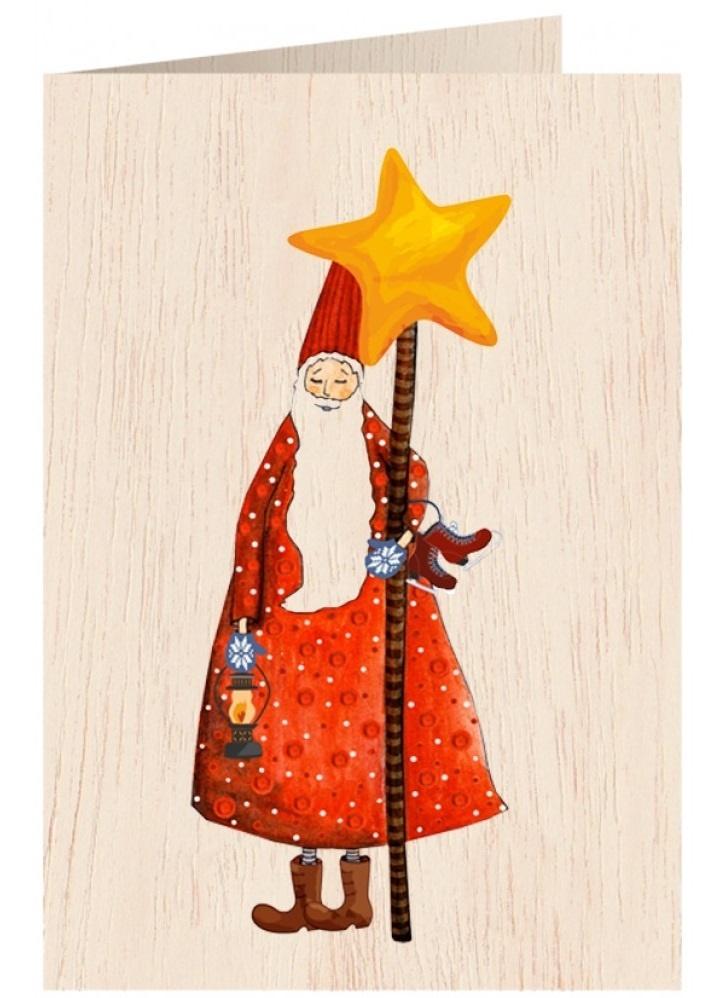 Karnet drewniany C6 + koperta Święta Mikołaj