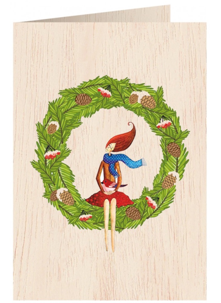 Karnet drewniany C6 + koperta Święta Wieniec