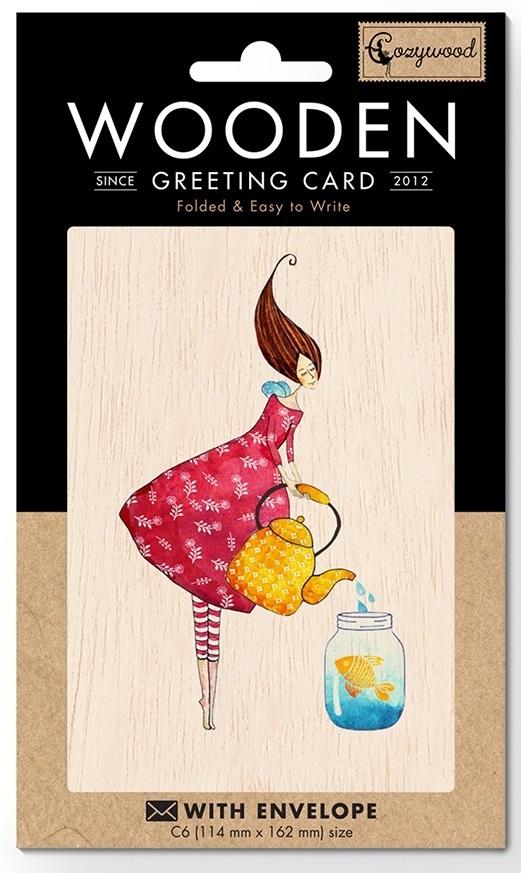 Opakowanie Karnet drewniany C6 + koperta Złota rybka
