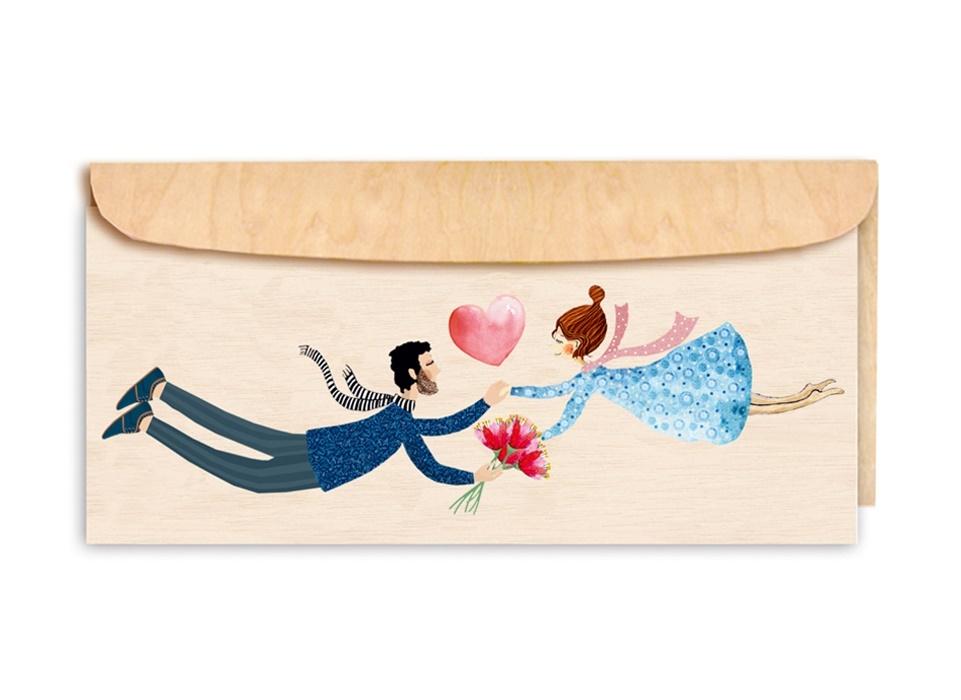 Opakowanie Karnet drewniany DL z drewnianą kopertą Ślub Para