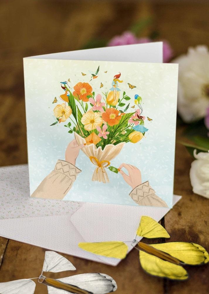 Opakowanie Karnet duży z 2 latającymi motylkami Bukiet
