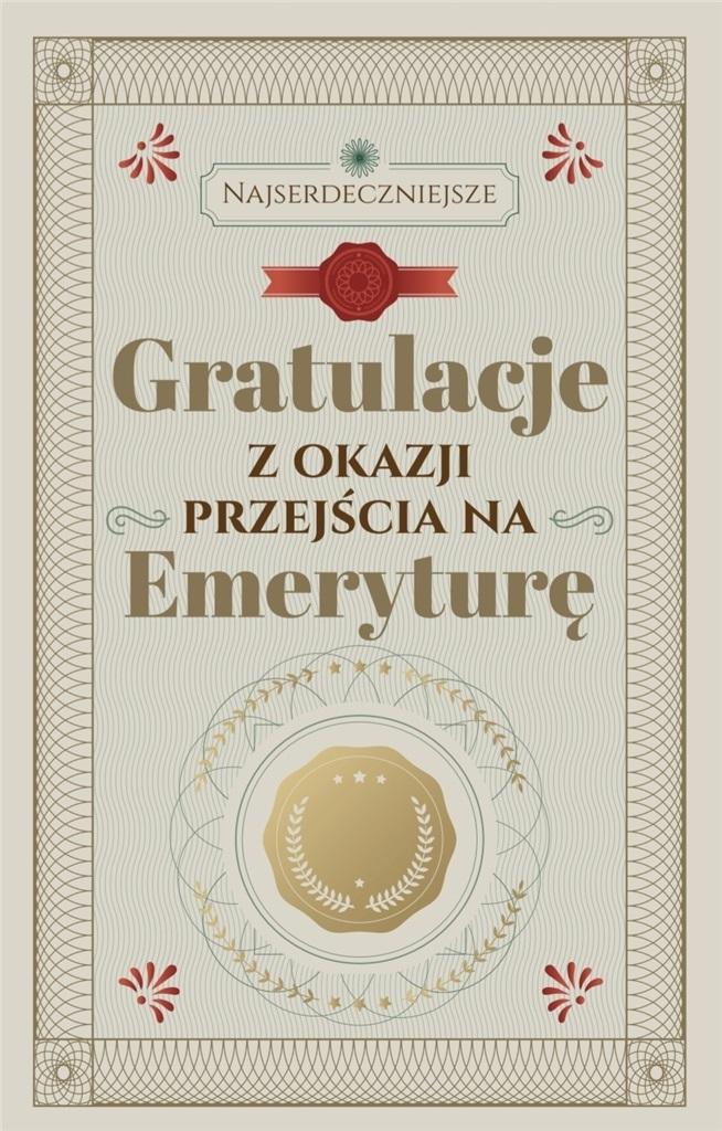 Karnet 2k. Klasyczny karnet Gratulacje z okazji przejścia na emeryturę. Uszlachetniony wysokiej jakości hotstampingiem ( złocenie ). Karnet zawiera życzenia.