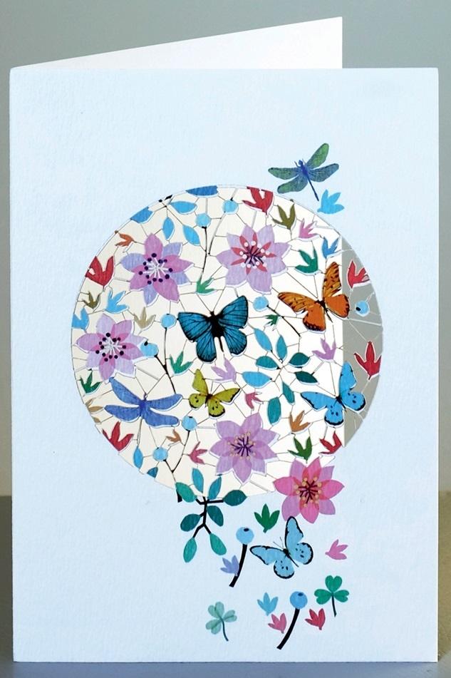 Karnet F07 wycinany + koperta Kwiaty i motyle