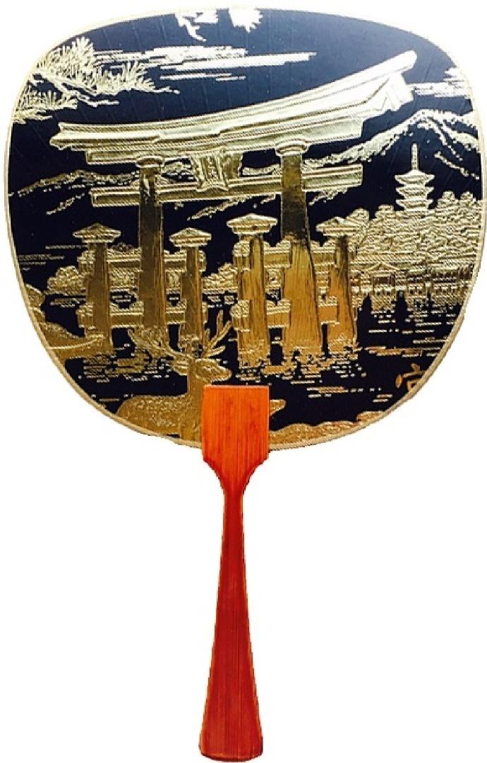 Elegancki japoński karnet premium z piękną, artystyczną ilustracją. Przedstawia tradycyjny japoński wachlarz (uchiwa) w głębokim czarnym kolorze ze złotymi akcentami. Na powierzchni wachlarza znajduje się majestatyczna scena przedstawiająca wielką bramę torii otoczoną lasem wysokich sosen. Złote detale na ciemnym tle podkreślają elegancję i sakralny charakter kompozycji, tworząc klasyczny, wyrafinowany obraz w stylu ukiyo-e. Karnet w zestawie z kopertą, bez tekstu w środku.