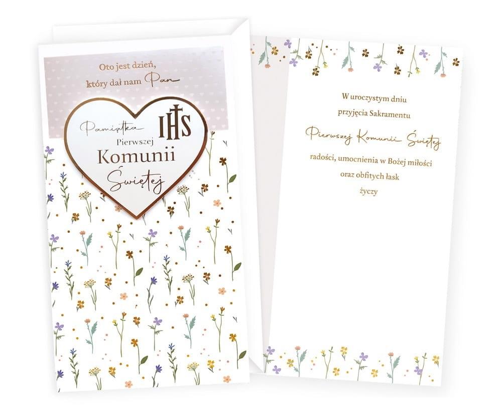 Każda kartka w kolekcji Passion Moments to małe arcydzieło - wyjątkowe i niepowtarzalne, piękne wizualnie. Kartki PM są bardzo bogato zdobione, a jednocześnie skromne i stylowe, cały efekt tkwi w detalach i doskonałym wykonaniu. W zależności od wzoru, na kartkach znajdują się dekoracje ze złotej, srebrnej, perłowej lub holograficznej folii, a także doklejki biżuteryjne, kokardki, brokat, laserowe wycięcia, wstążeczki i inne dodatki. Wnętrze karnetu to zawsze atrakcyjna grafika i tekst życzeń. Kartki mają w komplecie dopasowaną kopertę. Cechy szczególne: zdobienie: przynajmniej dwie folie (metaliczne/perłowe/holograficzne), brokat, elementy doklejane, wycięcia laserowe, wstążeczki - w zależności od wzoru, wnętrze: z delikatną grafiką, wyjątkowe życzenia w środku, w komplecie: dopasowana kolorystycznie koperta, okazja: komunia Wymiary karnetu po złożeniu: 11,4 x 21,5 cm.