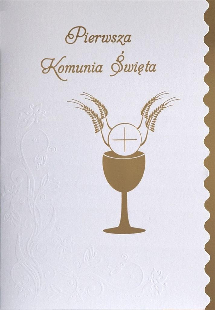 Szukasz subtelnej pamiątki z okazji Pierwszej Komunii Świętej? Skorzystaj z tej eleganckiej kartki! Minimalistyczny karnet z eleganckimi tłoczeniami i złoconym symbolem kielicha i hostii z pewnością zachwyci i stanie się miłą pamiątką.