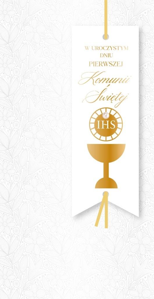 Kartka na I Komunię Świętą z serii Passion Moments PM-405 Każda kartka w kolekcji Passion Moments to małe arcydzieło - wyjątkowe i niepowtarzalne, piękne wizualnie. Kartki PM są bardzo bogato zdobione, a jednocześnie skromne i stylowe, cały efekt tkwi w detalach i doskonałym wykonaniu. W zależności od wzoru, na kartkach znajdują się dekoracje ze złotej, srebrnej, perłowej lub holograficznej folii, a także doklejki biżuteryjne, kokardki, laserowe wycięcia, wstążeczki i inne dodatki. Wnętrze karnetu to zawsze atrakcyjna grafika i tekst życzeń. Kartki mają w komplecie dopasowaną kopertę. Cechy szczególne: zdobienie: przynajmniej dwie folie (metaliczne/perłowe/holograficzne), elementy doklejane, wycięcia laserowe, wstążeczki - w zależności od wzoru, wnętrze: z delikatną grafiką, wyjątkowe życzenia w środku, w komplecie: dopasowana kolorystycznie koperta, wymiary karnetu po złożeniu: 11,4 x 21,5 cm. okazja: Komunia