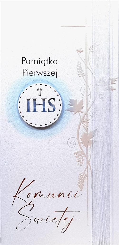 Karnet okolicznościowy z kopertą i życzeniami w środku.