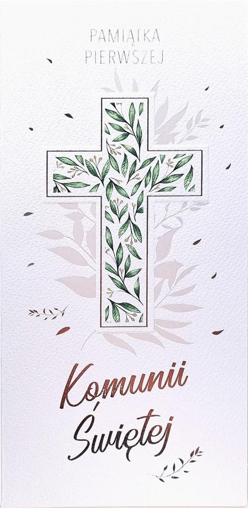 Karnet okolicznościowy z kopertą i życzeniami w środku.
