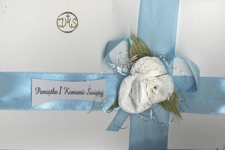 Ozdobna kartka pocztowa z okazji I komunii. Dołączona koperta. Robiona ręcznie.