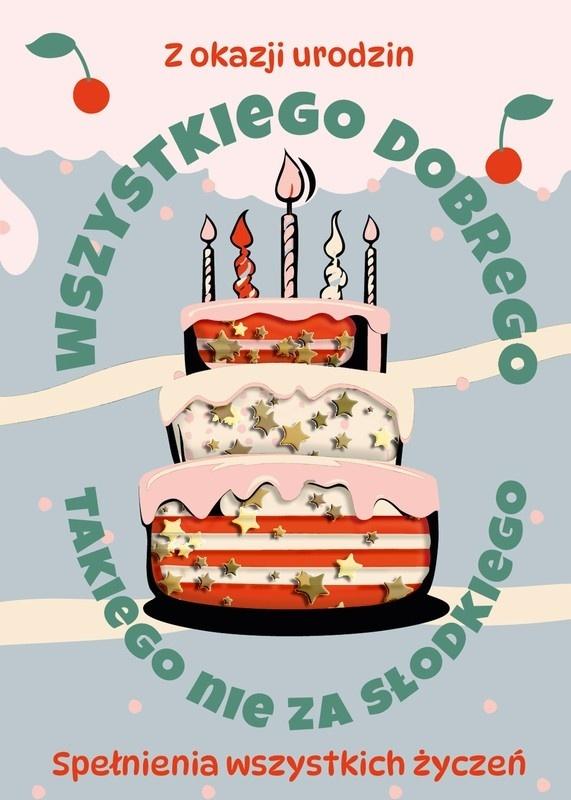 Karnet Konfetti formatu B6, z elementami złocenia lub srebrzenia. Front ozdobione w złote gwiazdki konfetti, które urozmaicają kartkę. Idealny wybór na wyjątkowe urodziny.