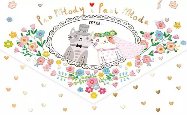 Karnet z kieszonką na pieniądze w formacie A5, składany z trzech. Złocony i tłoczony, teksy życzeń w środku. Wydrukowany na wysokiej jakości papierze. W zestawie koperta.
